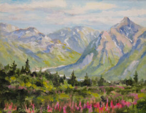 “My work is about color. I combine the awe inspiring grandeur of the Alaska landscape with a classic impressionist approach to color, light, and atmosphere in my paintings. Much of my work is painted on-site, en plein air. I try to capture the emotional response of “being there” with a palette knife, brush, and oil paints. My work combines two of my favorite in life: being outdoors and oil painting.”