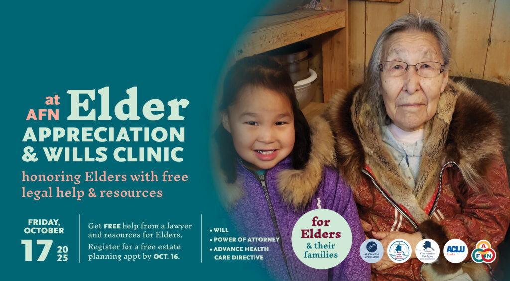 Elder Appreciation and Wills Clinic: A resource fair and estate planning drafting clinic for Elders will be held on October 17, 2025 at the Alaska Federation of Natives Convention. Attorneys are needed to draft wills, powers of attorney, and/or advance health care directives. Clients must pre-register and complete an intake form before the clinic. Click here to sign up to volunteer. A 1.5 hour training on drafting these documents will be provided on October 1, 2025, and will be available by video on demand the next day. Register here for that free ethics CLE.